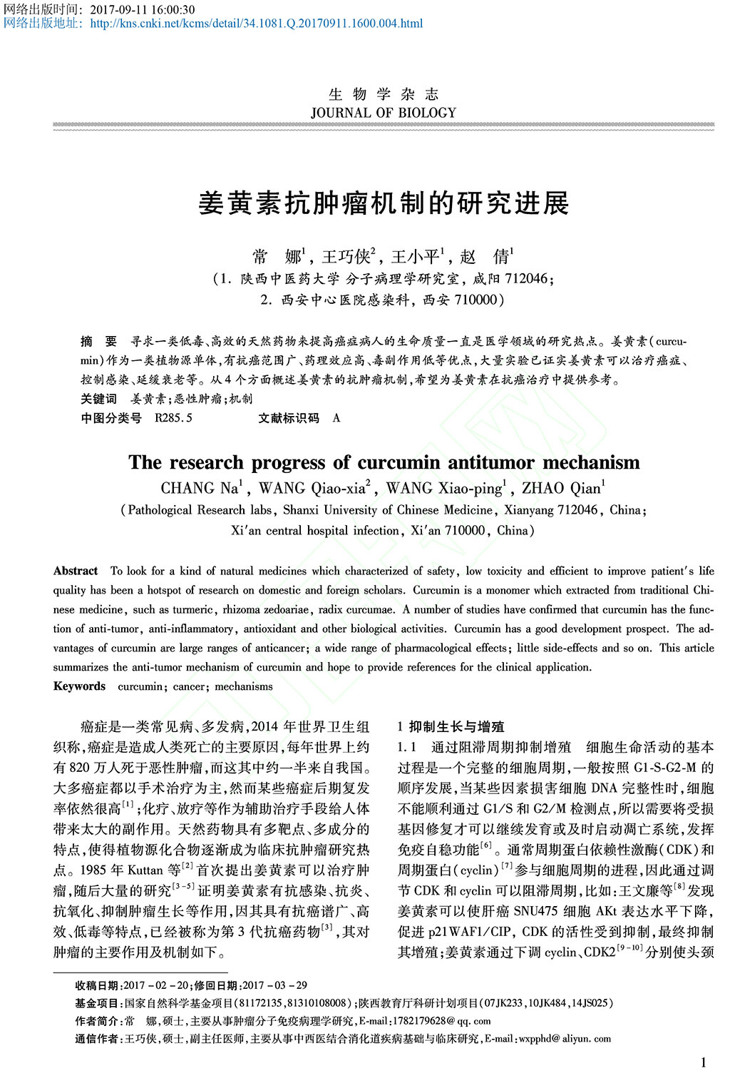 姜黃素抗腫瘤機制的研究進展_常娜