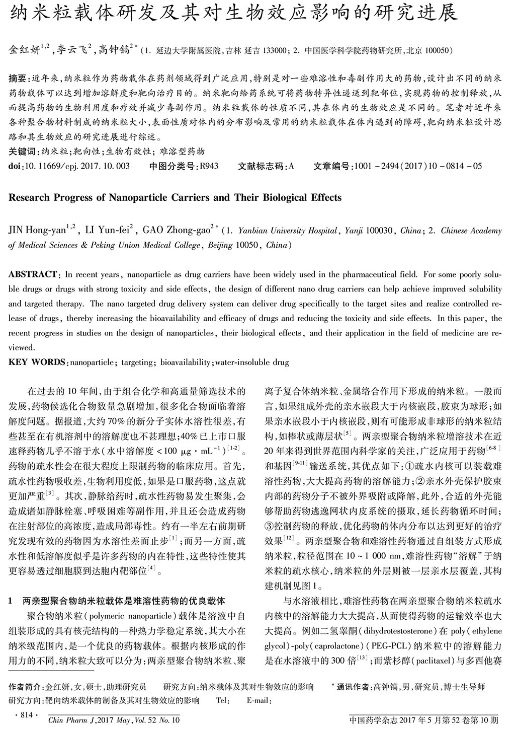 納米粒載體研發(fā)及其對生物效應(yīng)影響的研究進(jìn)展