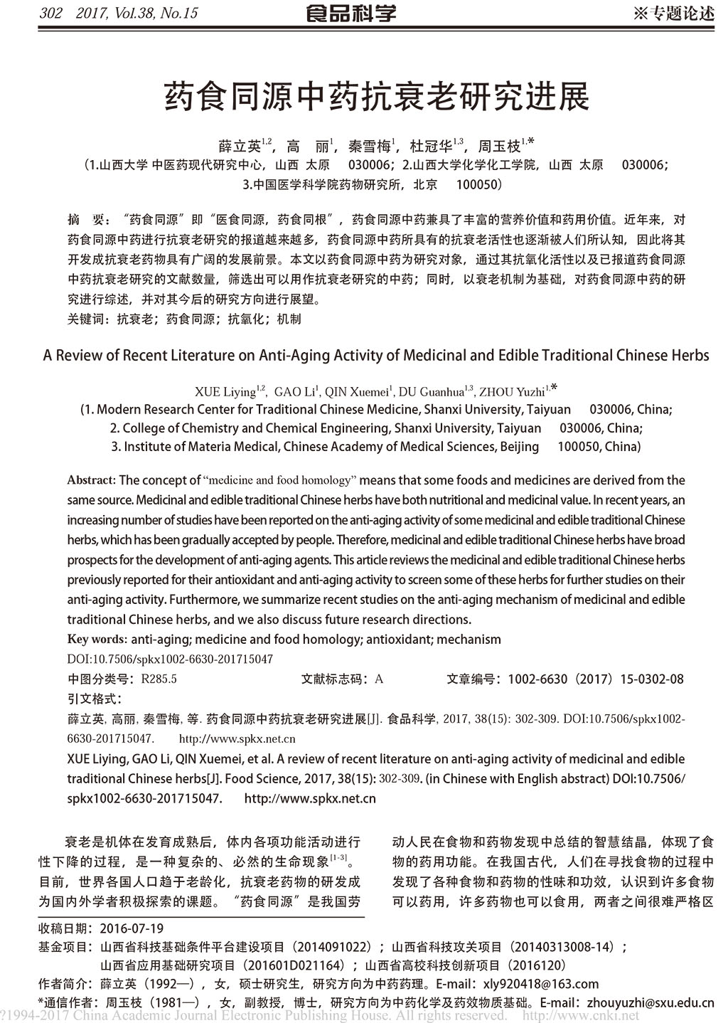 藥食同源中藥抗衰老研究進(jìn)展_薛立英