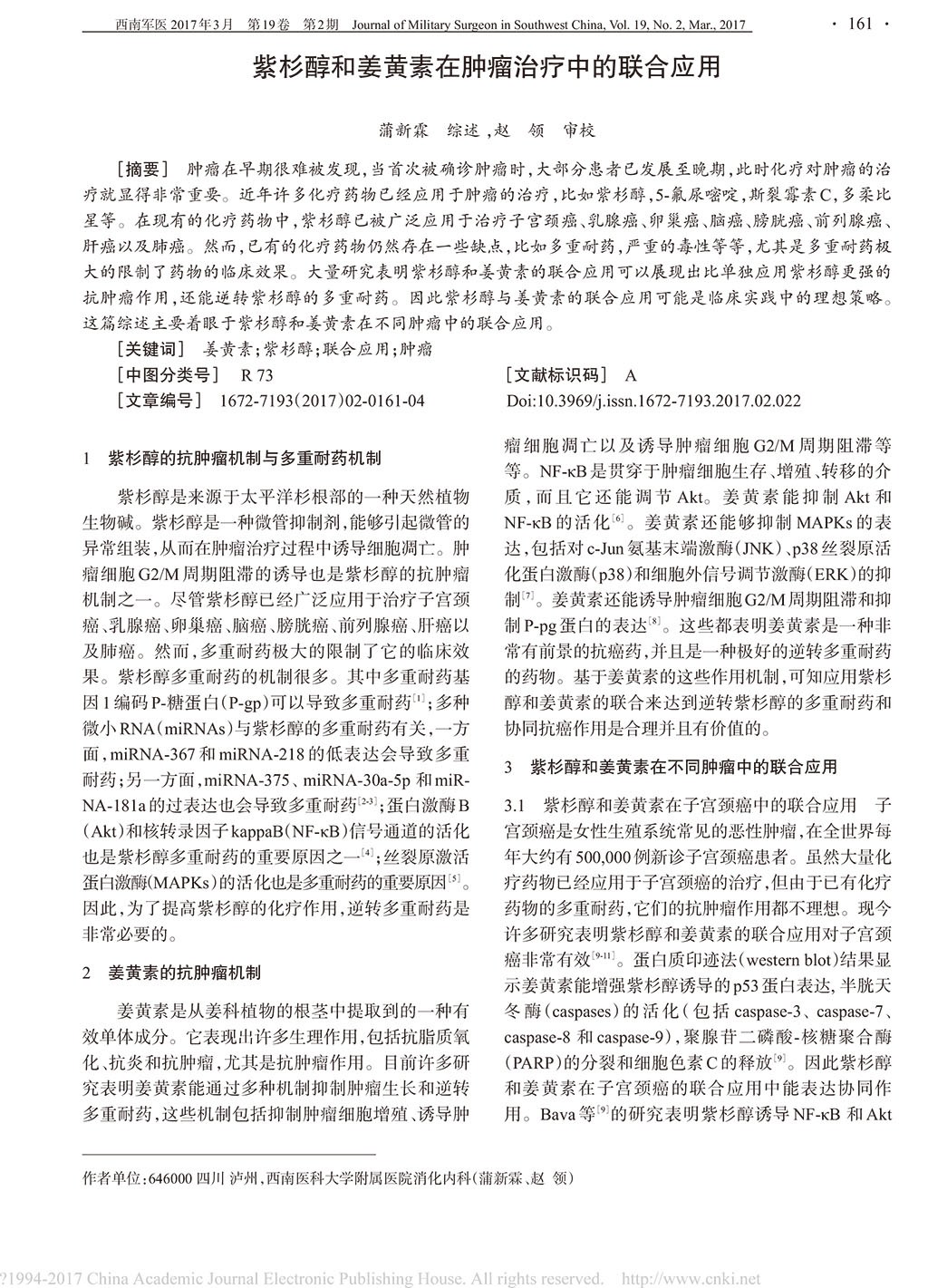 紫杉醇和姜黃素在腫瘤治療中的聯(lián)合應用_蒲新霖